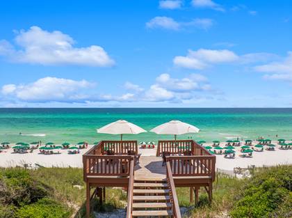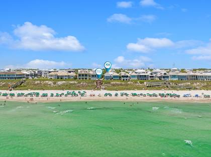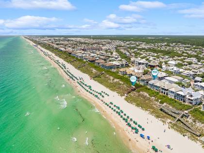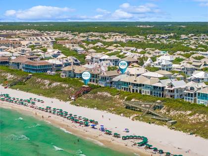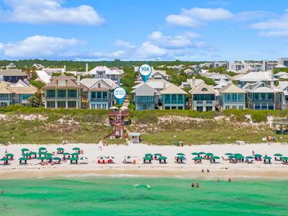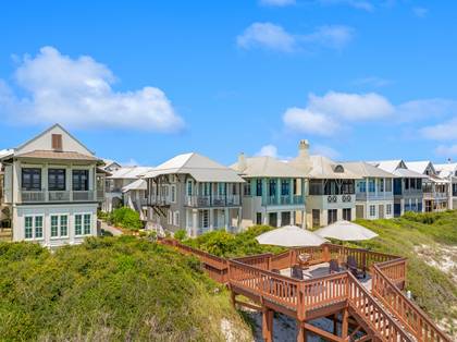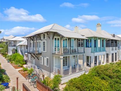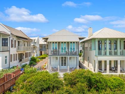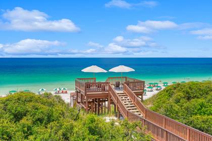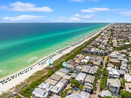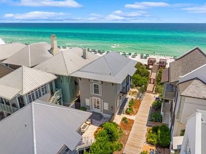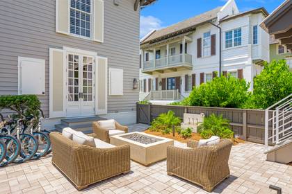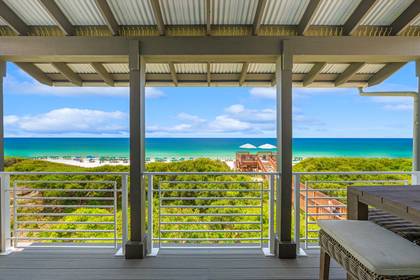 Located mere inches from the beach access point, Atwoods Cottage & Carriage House is a lovely combination of luxurious oceanside estate and laidback, relaxing gulf coast vibes. This home also has six bicycles, so you can easily peddle to dinner or an afternoon ice cream cone in the charming downtown area.