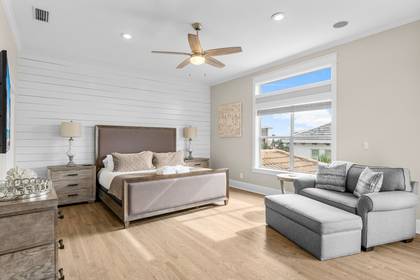 FloorPlan [61]Coastal Vue is a beautiful gulf-side home nestled on the pristine white sands of 30A, situated between Seacrest Beach and Rosemary Beach. Located in the exclusive, family-friendly gated Longue Vue community. It offers a superb location just one block from the shops and dining options of Seacrest Beach and within a short walk to Rosemary Beach and Alys Beach. This Seacrest rental has everything you need for a high-end beach retreat. Guests will appreciate the private, gated road and convenient beach access, located only 100 steps away. Those searching for 30A vacation rentals featuring a private pool will be delighted with this option. Cap off your day with spectacular Gulf of Mexico sunsets viewed from the fourth-floor cocktail porch. The property features five bedrooms and four bathrooms and can accommodate up to fourteen guests. All attractions are within walking distance, and complimentary adult bikes are included for guests to make the most of their stay.