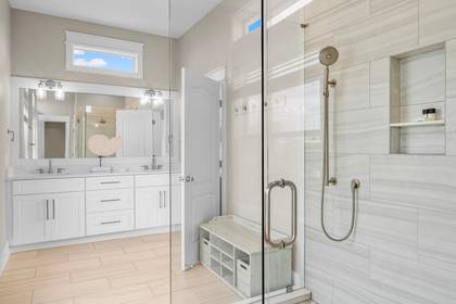 Bedroom 5 (Master Suite): King bed with private bathroom with double vanity and large glass enclosed shower. Complete with a private balcony.