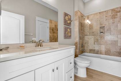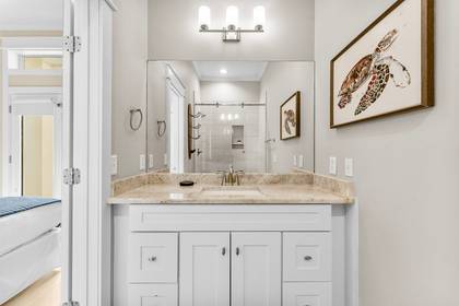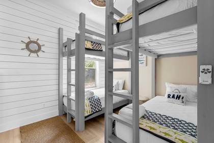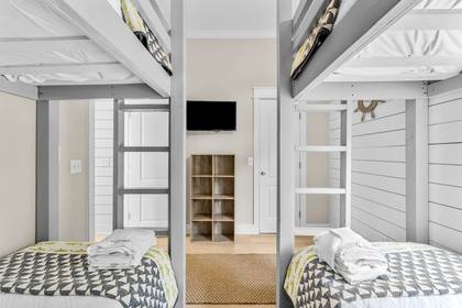 Bedroom 2: Two twin bunk beds(4 twin beds total) with shared bathroom (shower/tub combination)
