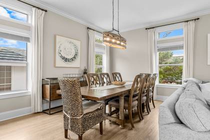 Dining: Table seating for 8-10 guests, plus bar seating for four