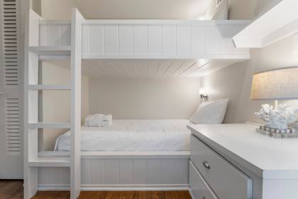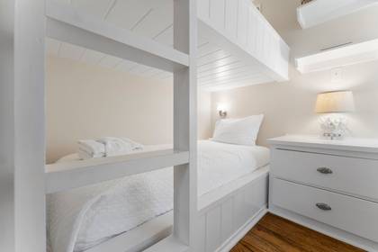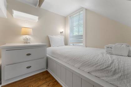 Interior [42]A cheerful, sun-filled family getaway, Julia's Carriage House features a cozy bunk area with three twin beds, a private loft with a queen bed and a full bath. Along with these great sleeping arrangements, Julia’s Carriage House features a kitchenette which includes a four-burner flat cooktop, dishwasher, mini fridge and microwave. Perfect for a small family!