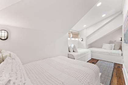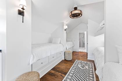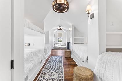 The third floor is a versatile and fun space, featuring a loft that can sleep up to seven guests with three twin beds and a full-over-full bunk bed. This area is perfect for children or friends, offering a cozy and communal setting for restful nights.