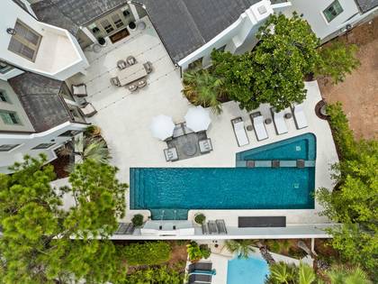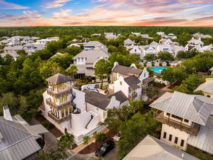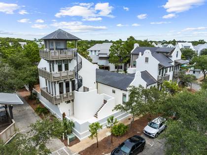 FloorPlan [103]Experience true elegance and refinement in one of Rosemary Beach's premier estate homes. Positioned on one of Rosemary's largest homesites, this exclusive, gated cottage and carriage house offers unparalleled luxury. Featuring 7 bedrooms, 7.5 bathrooms, and a two-car garage with additional parking for four cars inside the gate, this home is designed for the discerning homeowner. The four-story tower provides stunning sunset views over the Gulf of Mexico, and the expansive private pool is the largest in Rosemary Beach.