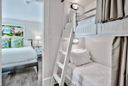 Immediately outside the second bedroom are two bunk beds which be great for young kids and there is a powder room immediately across the hall from the bunk beds.