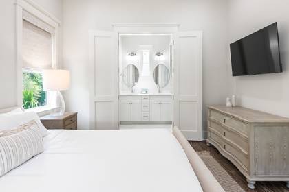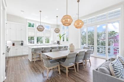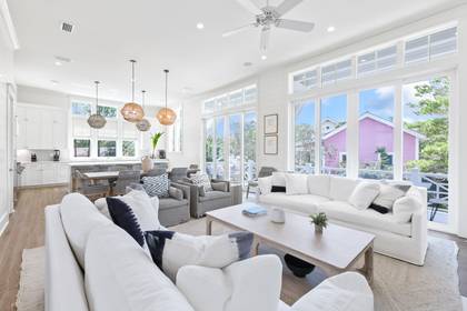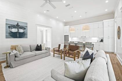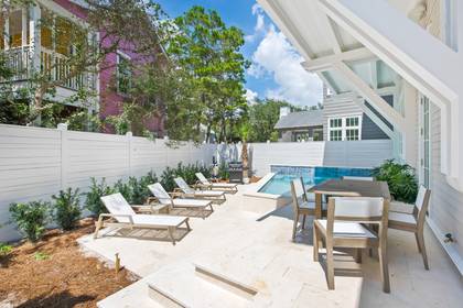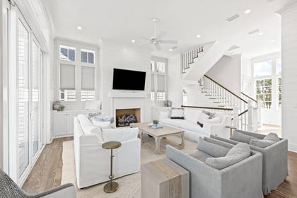 FloorPlan [101]Gorgeous and grand and boasting a soaring, palatial three-story facade, Seaside Vibes is a classic coastal home with space for twenty people. Thoughtfully designed to provide plenty of privacy, this sprawling sanctuary has two kitchens, two living areas, and a kitchenette on the third level— so each floor feels like its own independent hideaway. Yet there’s also tons of space for everyone to come together, including spacious, sun-kissed patios and a pristine, private pool with a waterfall feature. All this, plus six bicycles, a six-person golf cart, and an amazing location that keeps you close to the sand and the entertaining village of Seaside.