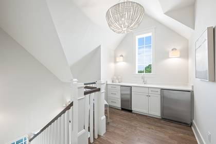 Up one more level on the soaring third floor, you’ll find a convenient KITCHENETTE with a wet bar, plus a fun and flexible BUNK ROOM with four twin-over-twin-size built-in bunk beds painted a nautical blue— perfect for the kids.