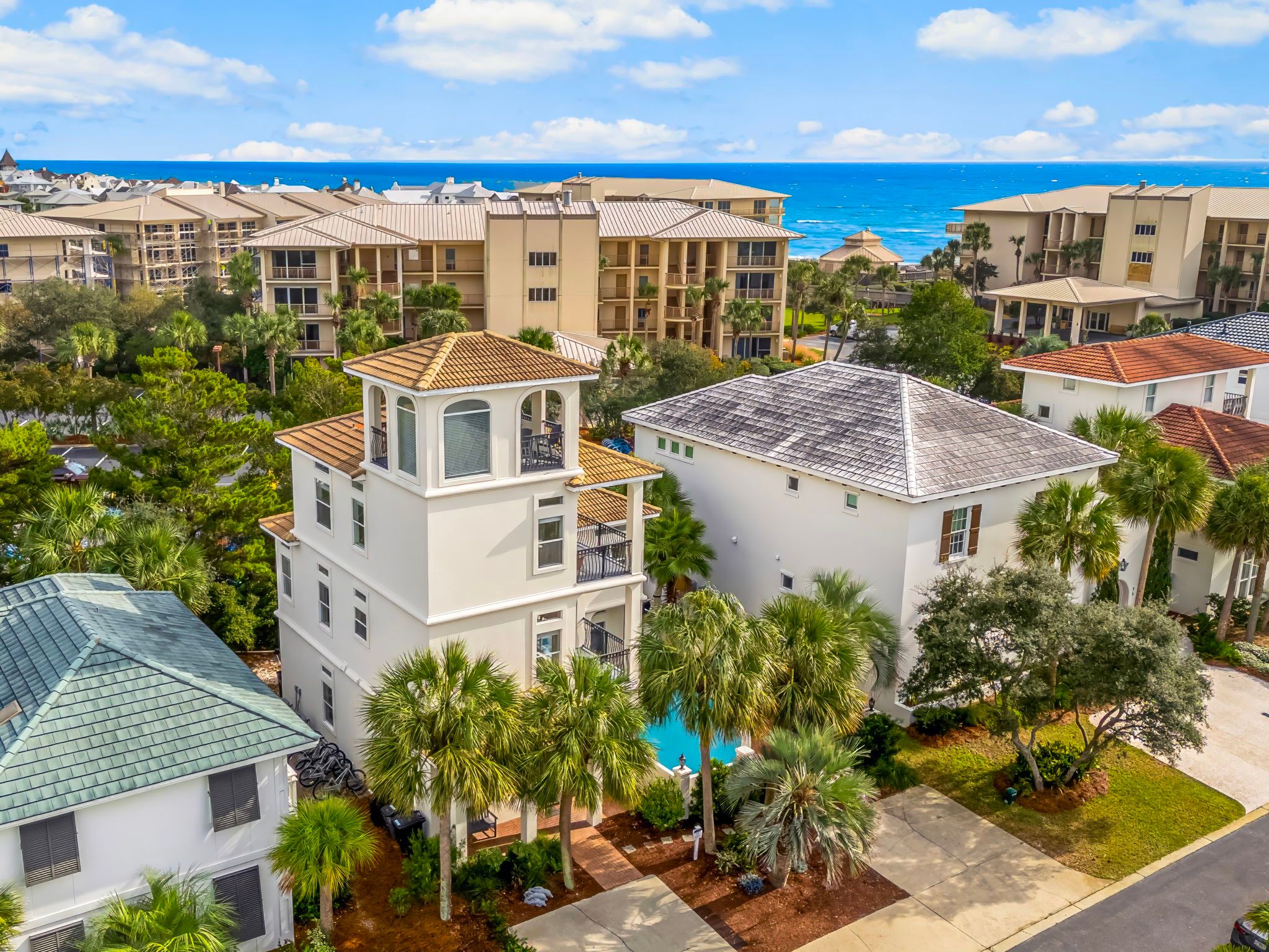 Coastal Vue is a beautiful gulf-side home nestled on the pristine white sands of 30A, situated between Seacrest Beach and Rosemary Beach. Located in the exclusive, family-friendly gated Longue Vue community. It offers a superb location just one block from the shops and dining options of Seacrest Beach and within a short walk to Rosemary Beach and Alys Beach. This Seacrest rental has everything you need for a high-end beach retreat. Guests will appreciate the private, gated road and convenient beach access, located only 100 steps away. Those searching for 30A vacation rentals featuring a private pool will be delighted with this option. Cap off your day with spectacular Gulf of Mexico sunsets viewed from the fourth-floor cocktail porch. The property features five bedrooms and four bathrooms and can accommodate up to fourteen guests. All attractions are within walking distance, and complimentary adult bikes are included for guests to make the most of their stay.