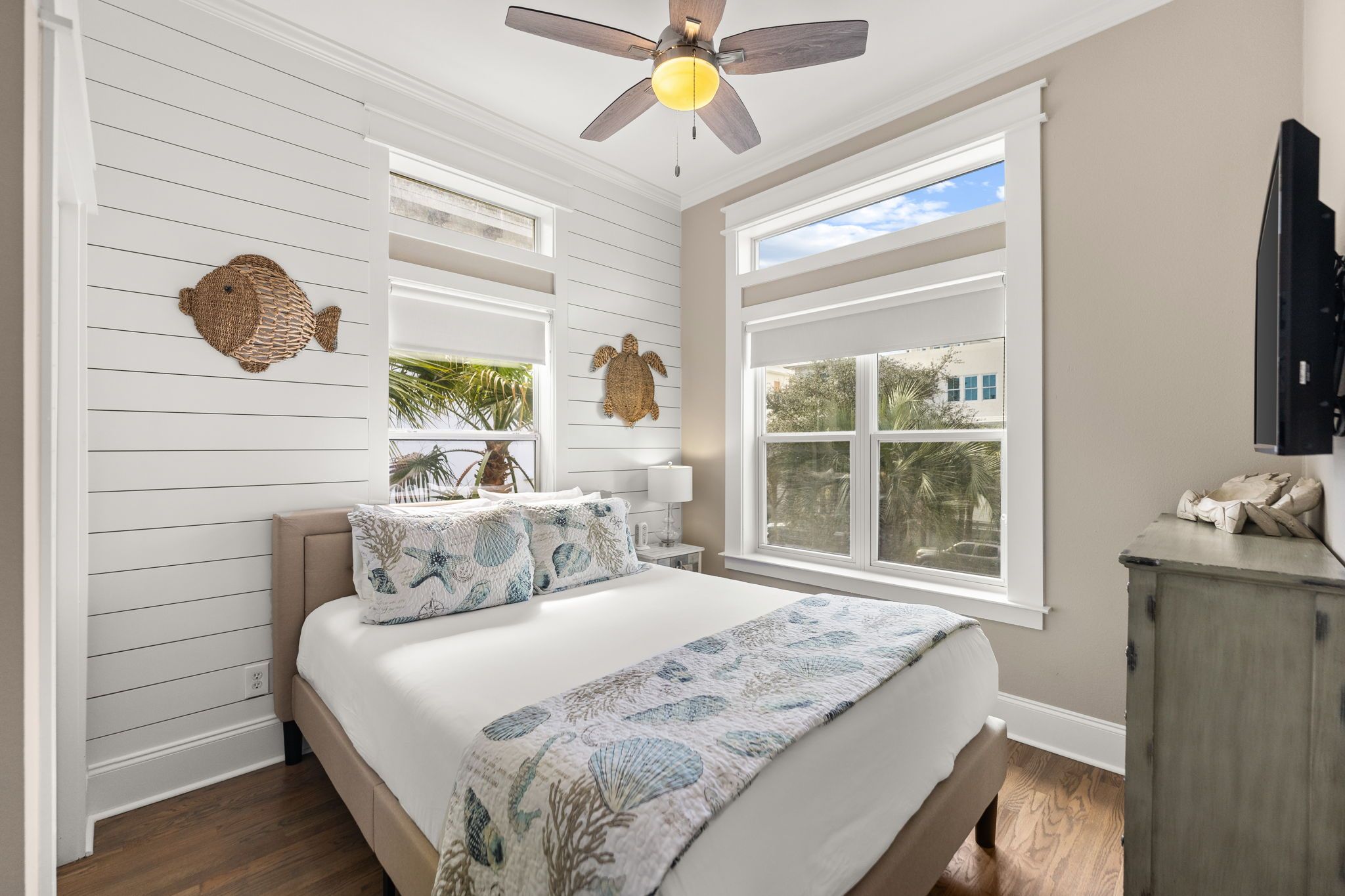 Bedroom 2: Two twin bunk beds(4 twin beds total) with shared bathroom (shower/tub combination)