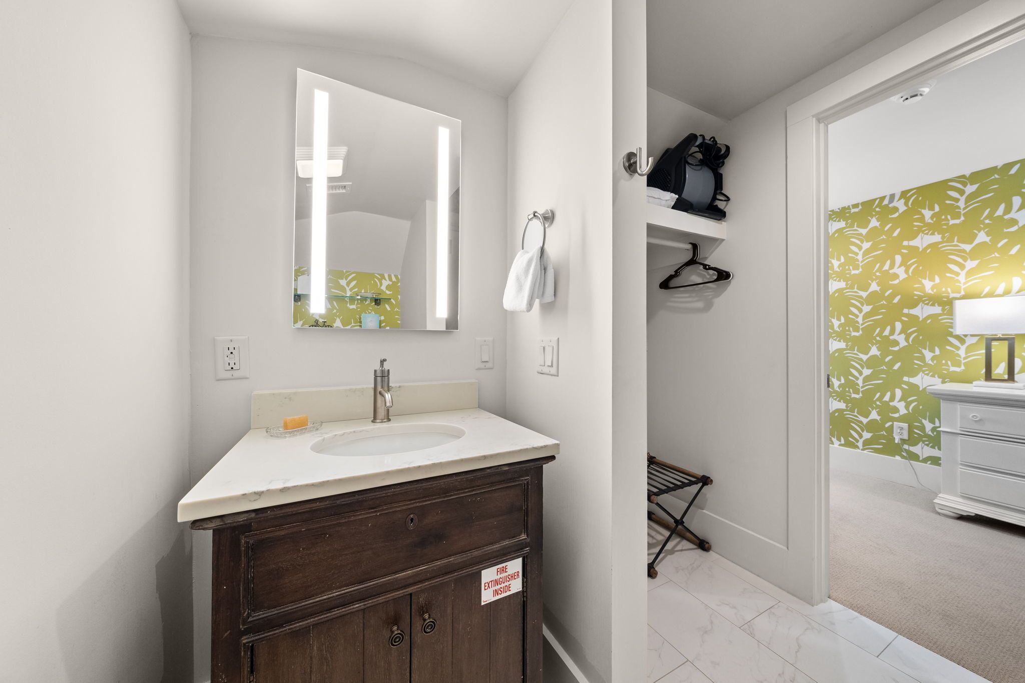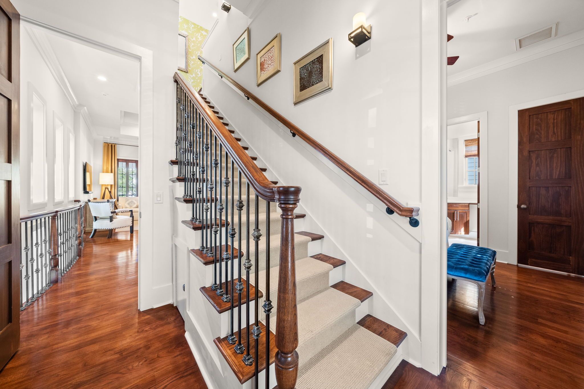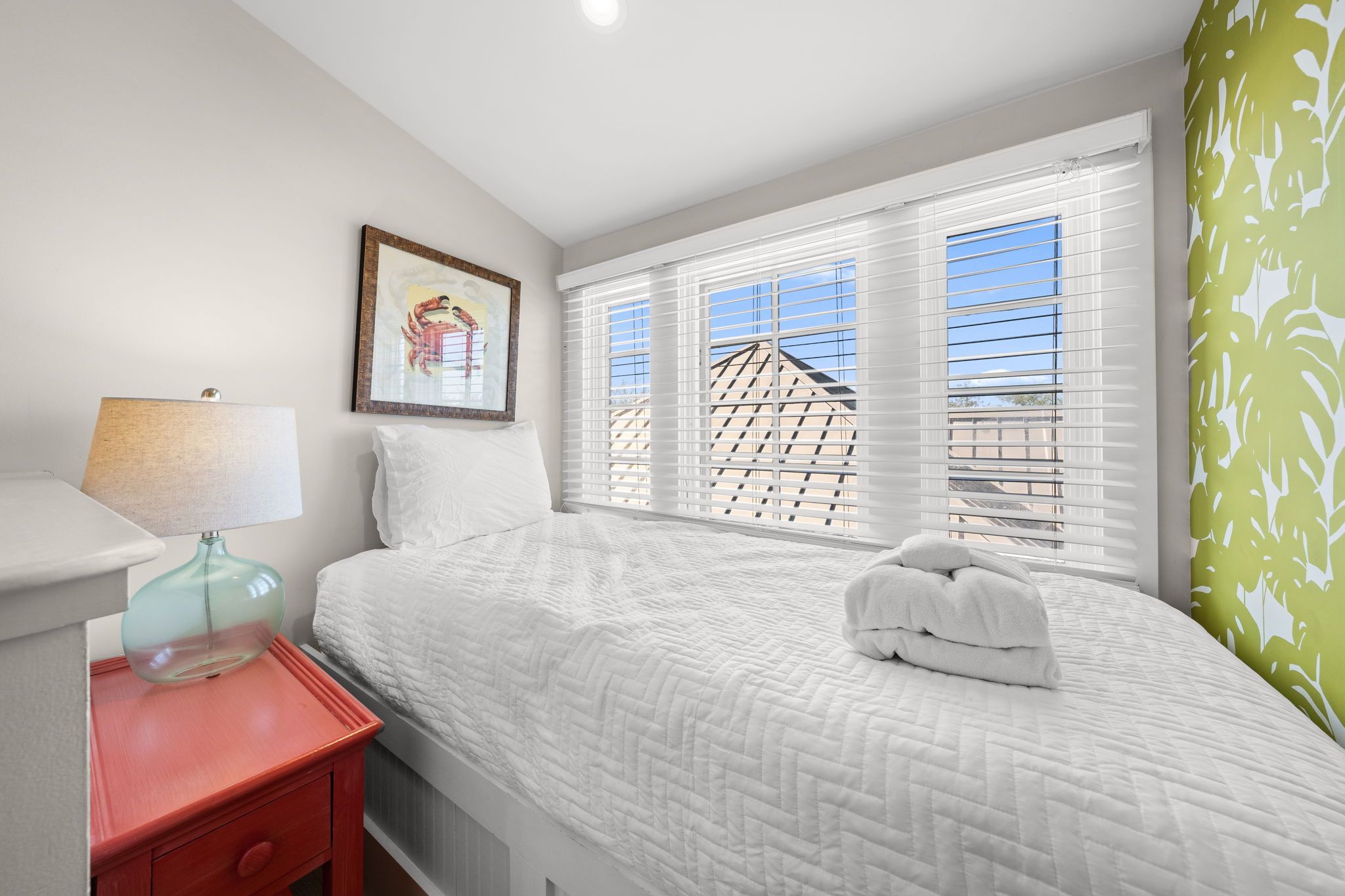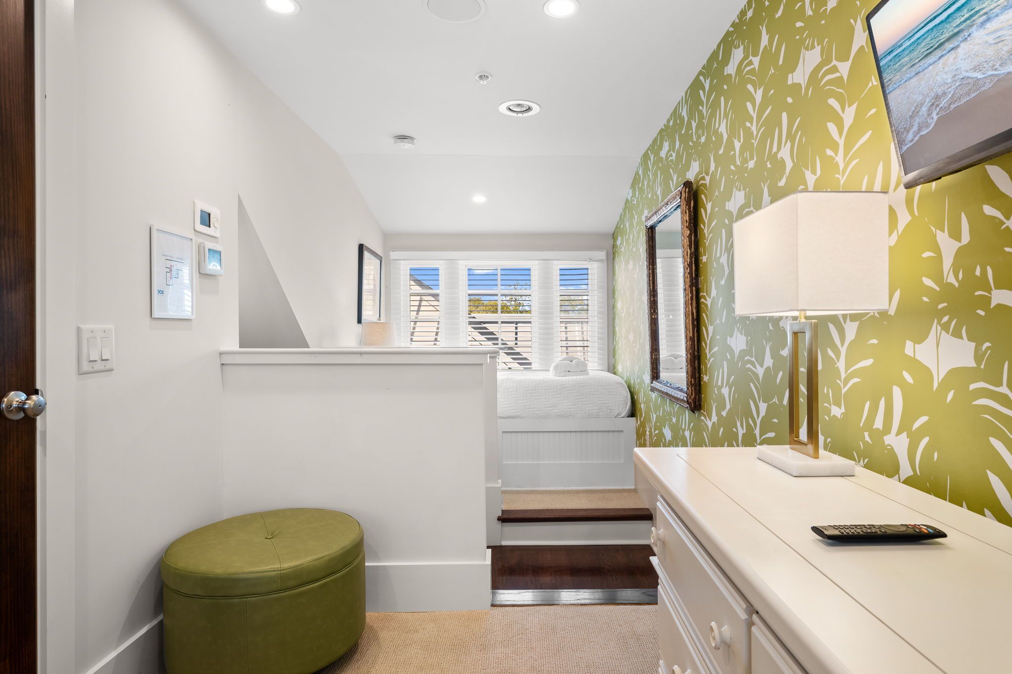 The third floor offers a cozy reading nook and a private queen suite with its own ensuite bath, creating a peaceful hideaway for guests.