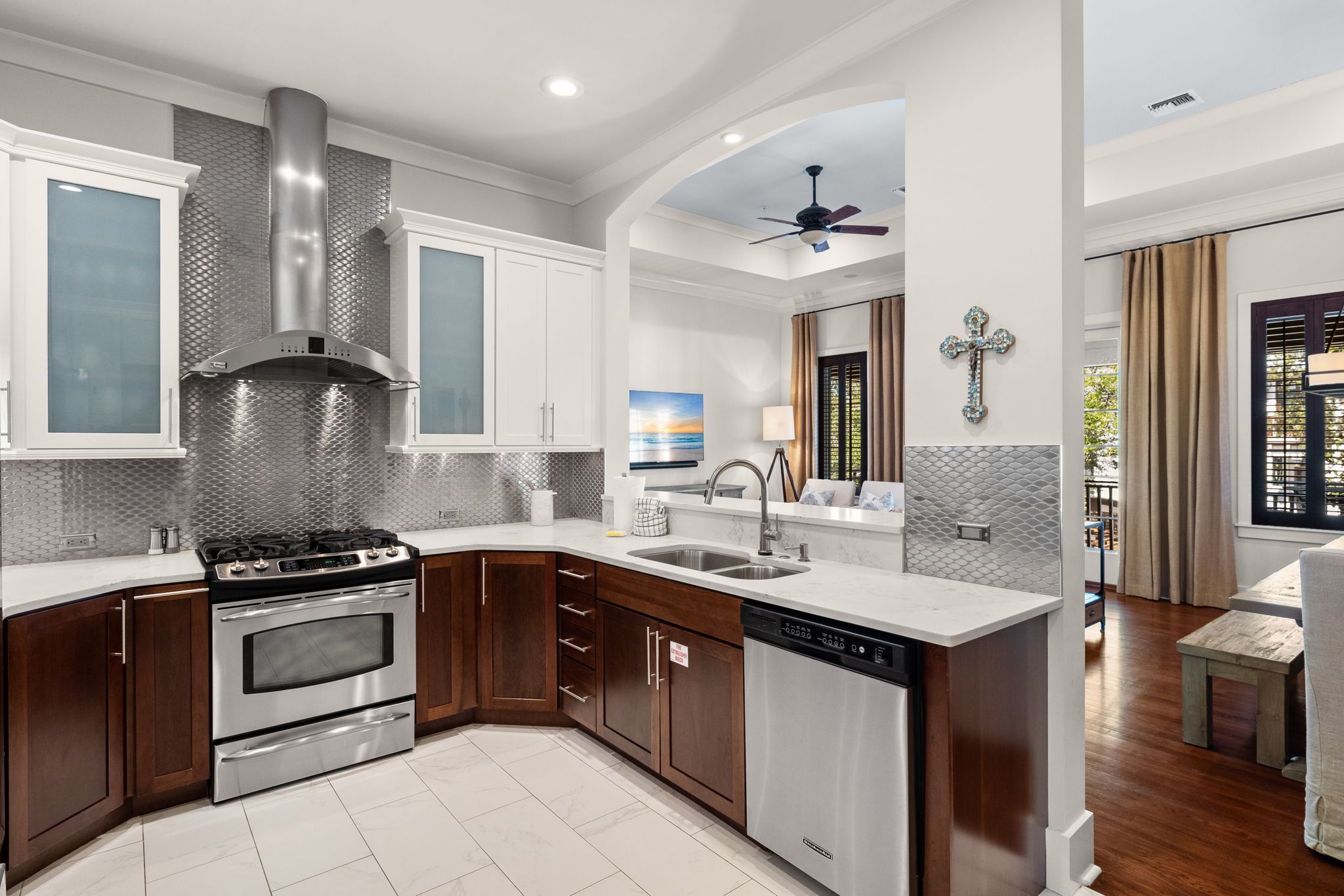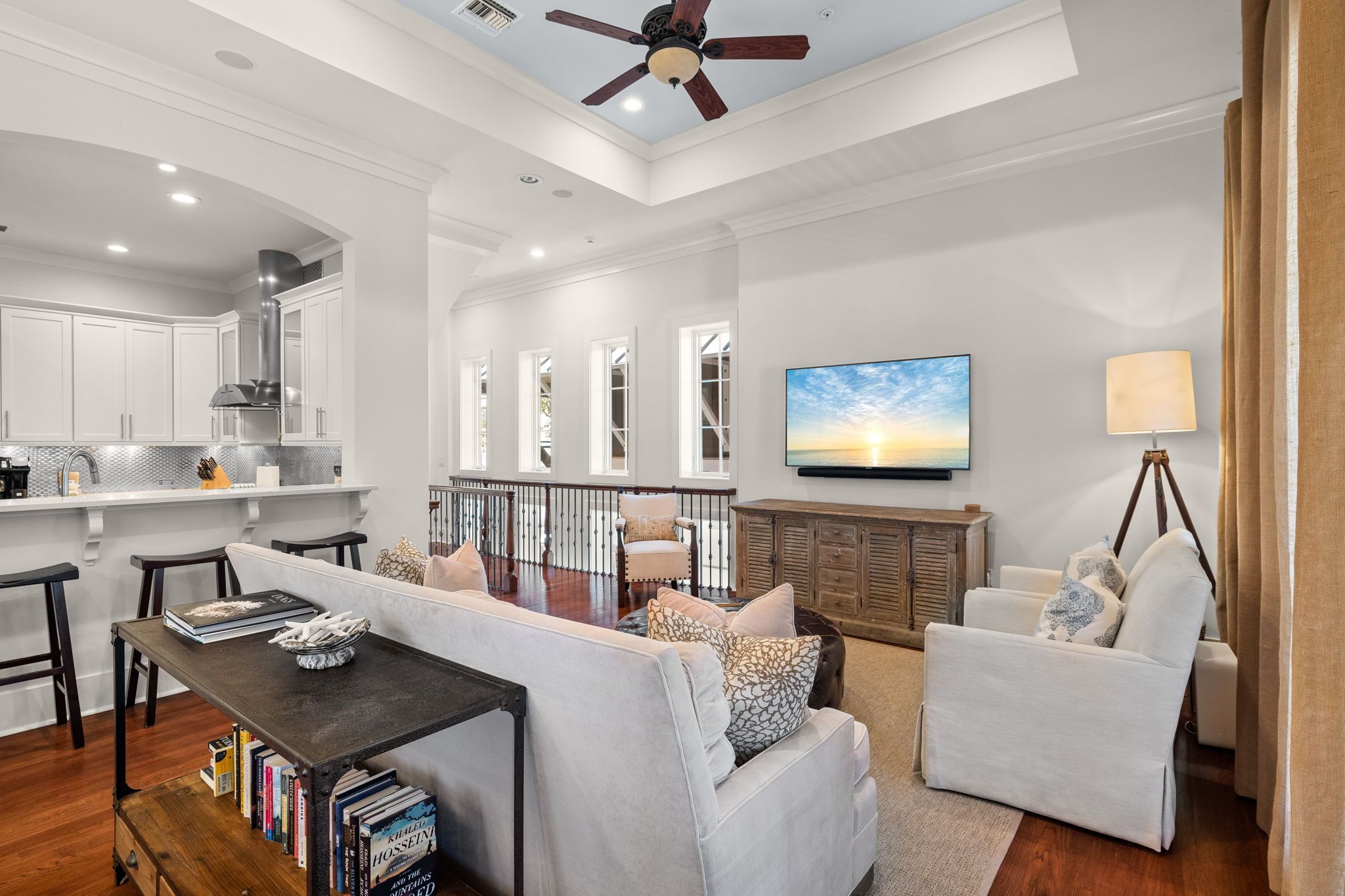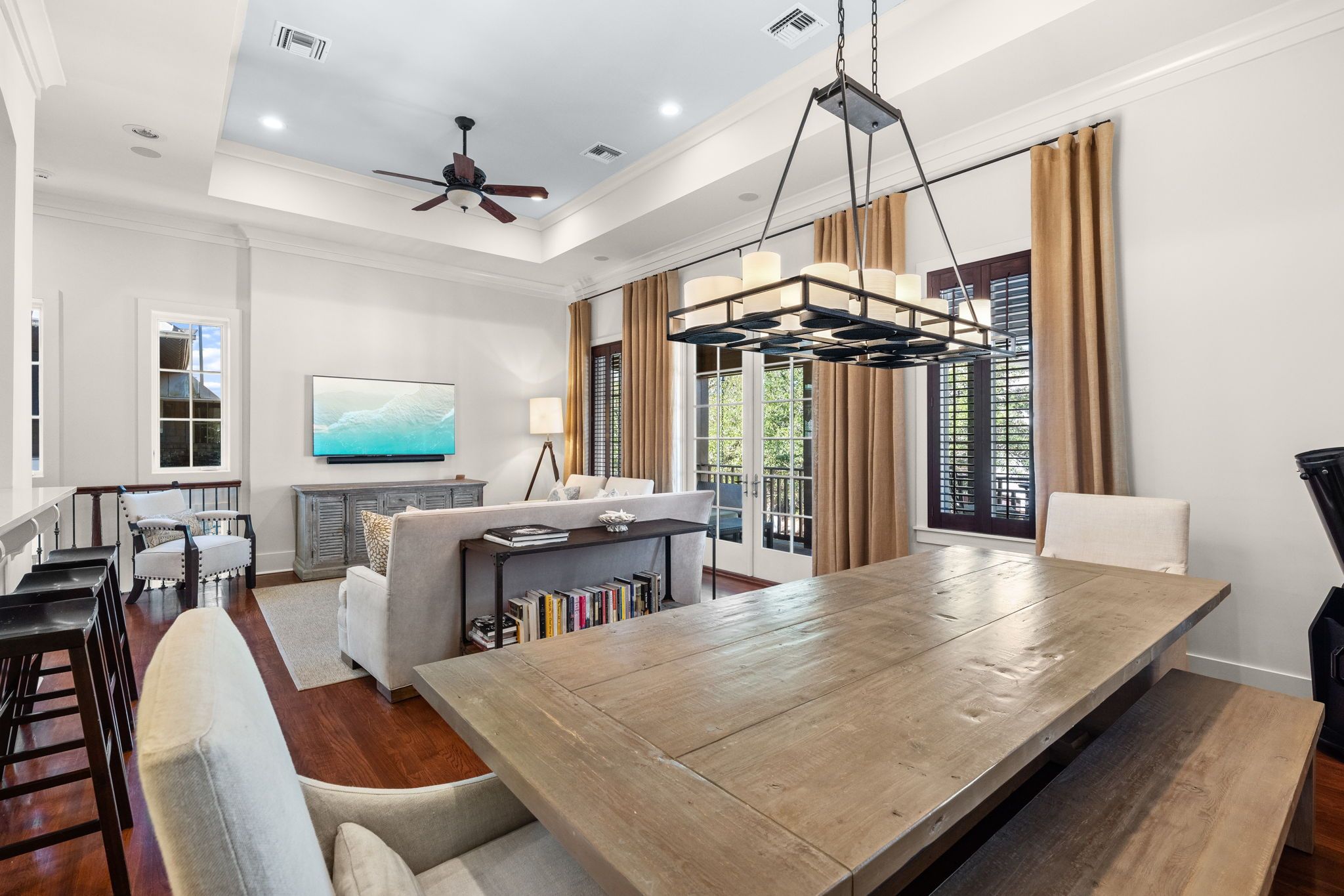 • Open-Concept Kitchen, Dining (seats 8), and Living area